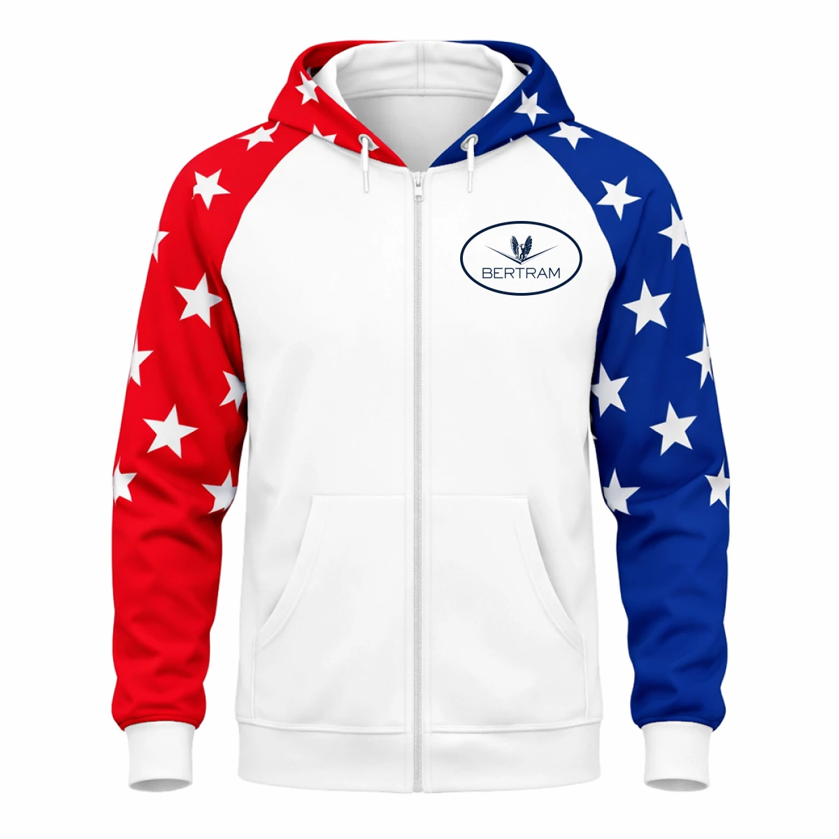 • USA flag–inspired red, white, and blue design