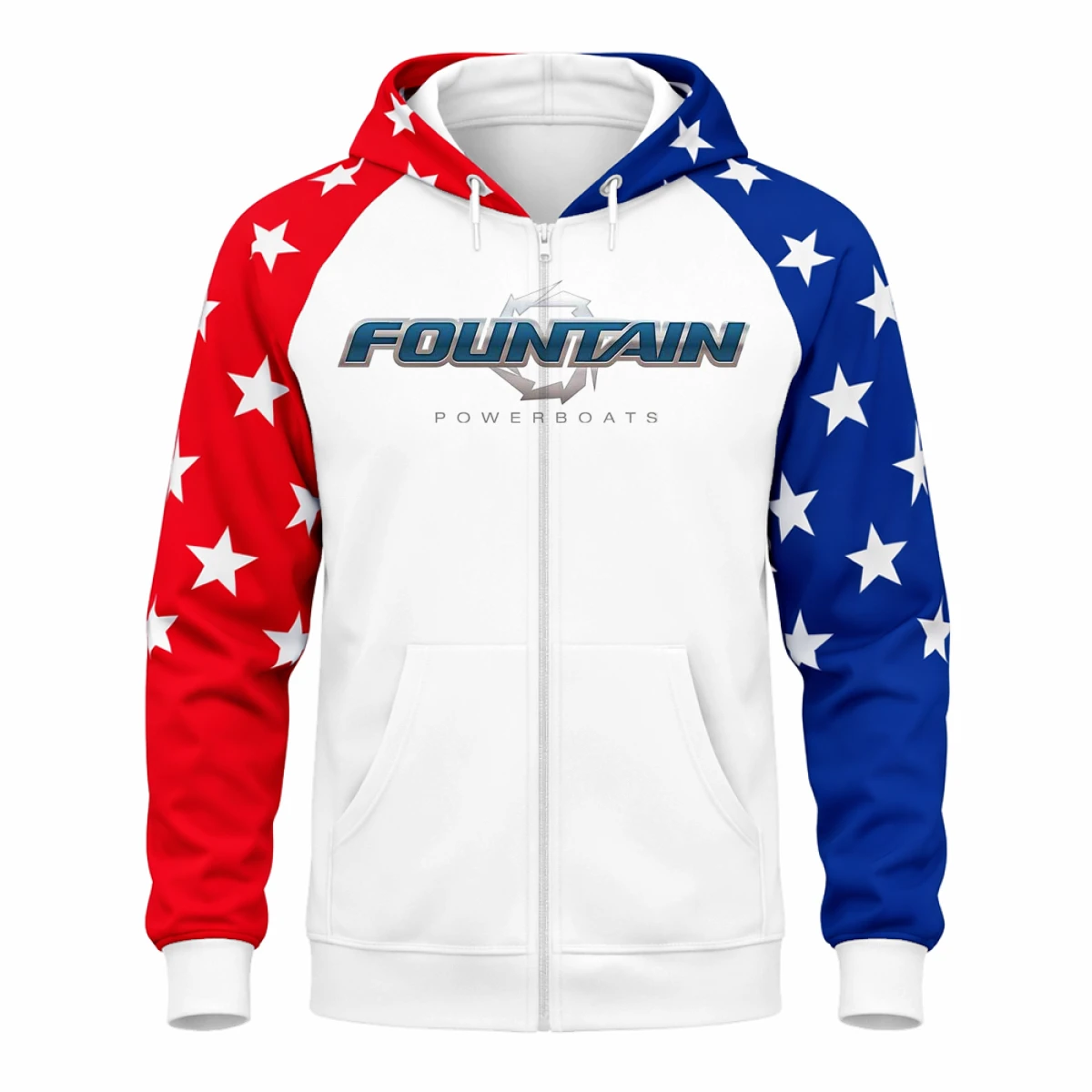 • USA flag–inspired red, white, and blue design