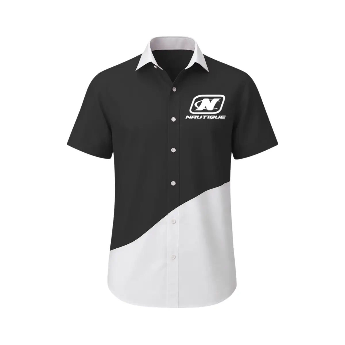 - Collar: Classic camp-style spread collar