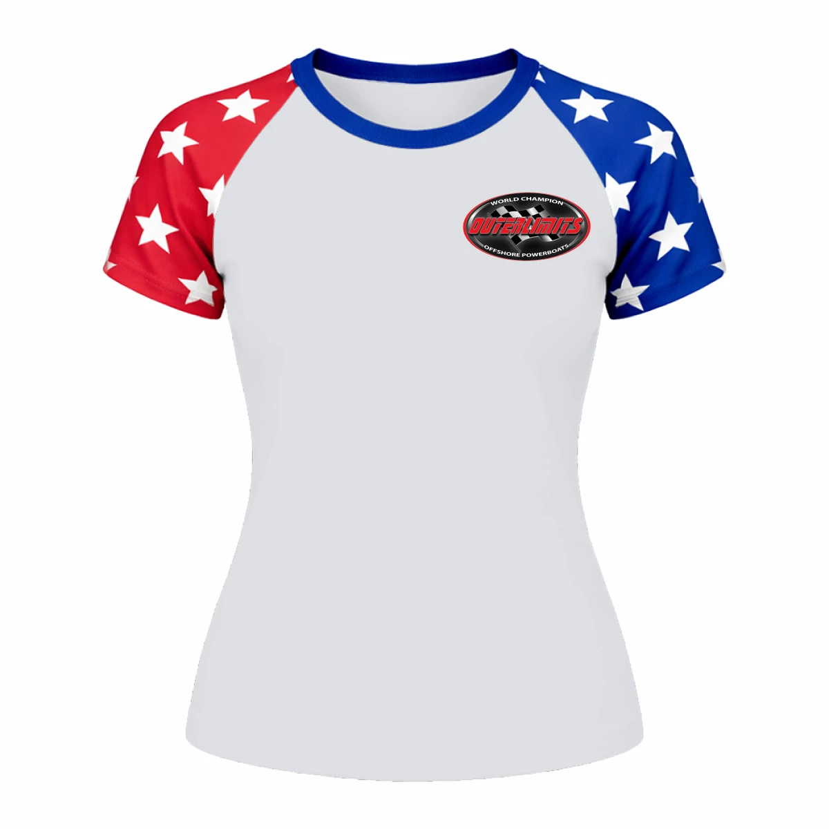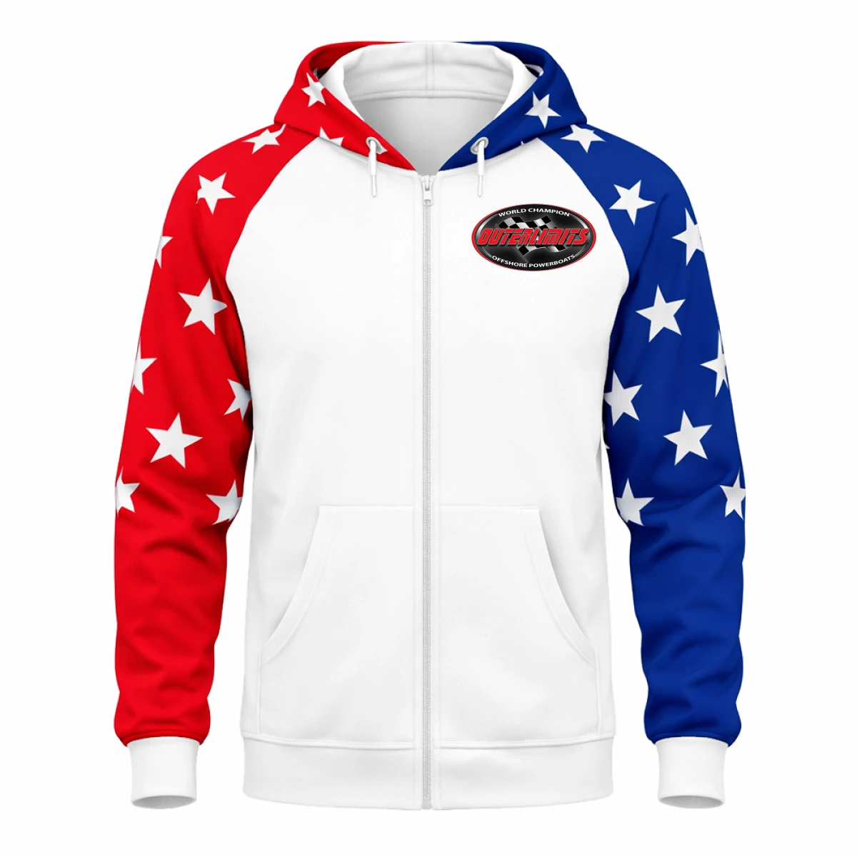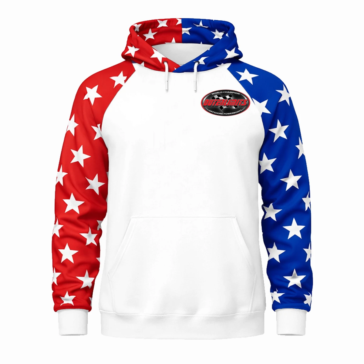 • USA flag–inspired red, white, and blue design