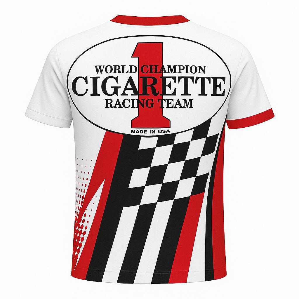 Design: Cigarette Racing Team graphics front and back with #1 and checkered flag